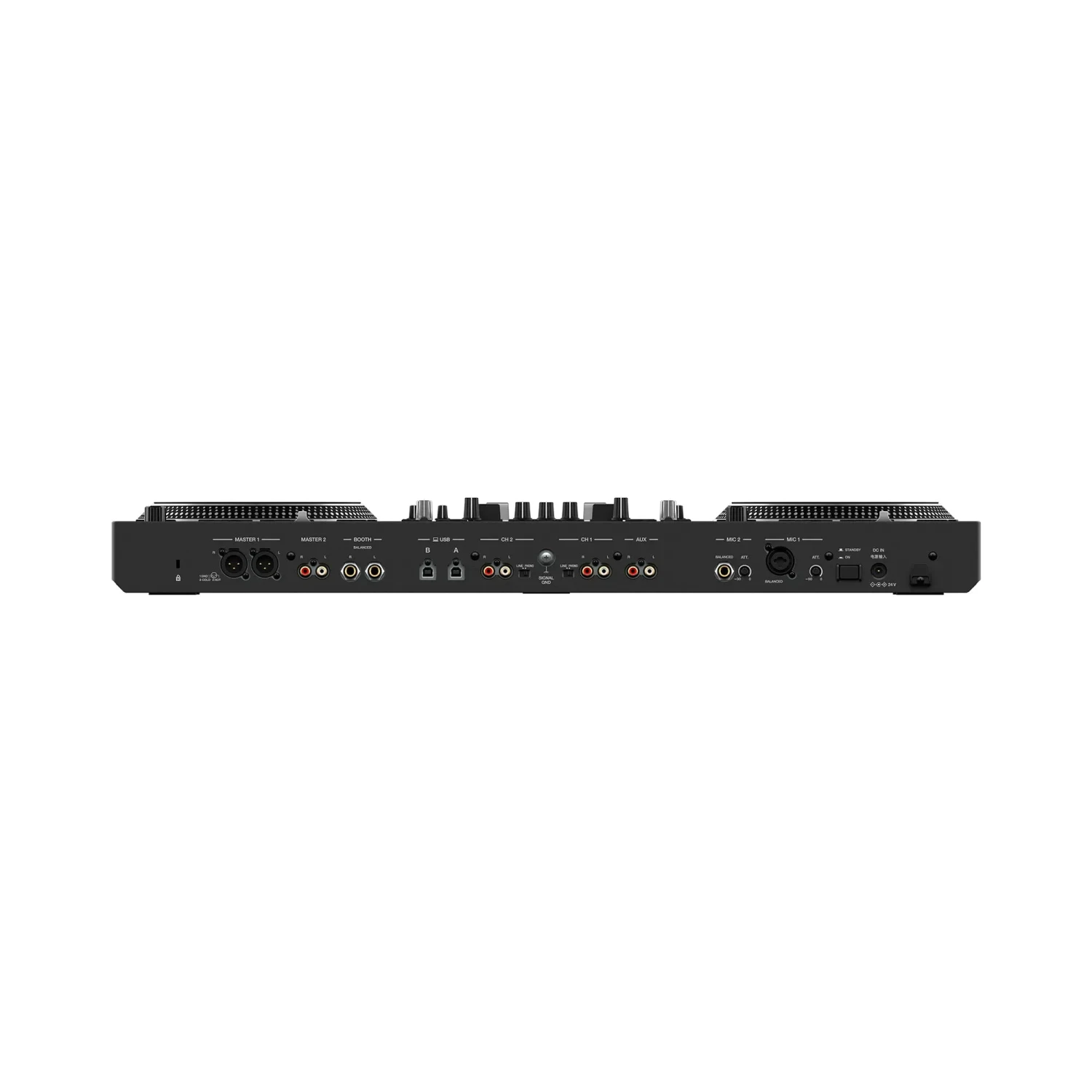 - Outputs: 2 MASTER (XLR, RCA), 1 BOOTH (1/4-inch TRS Jack), 2 PHONES (1/4-inch stereo jack, 3.5-mm stereo mini-jack)